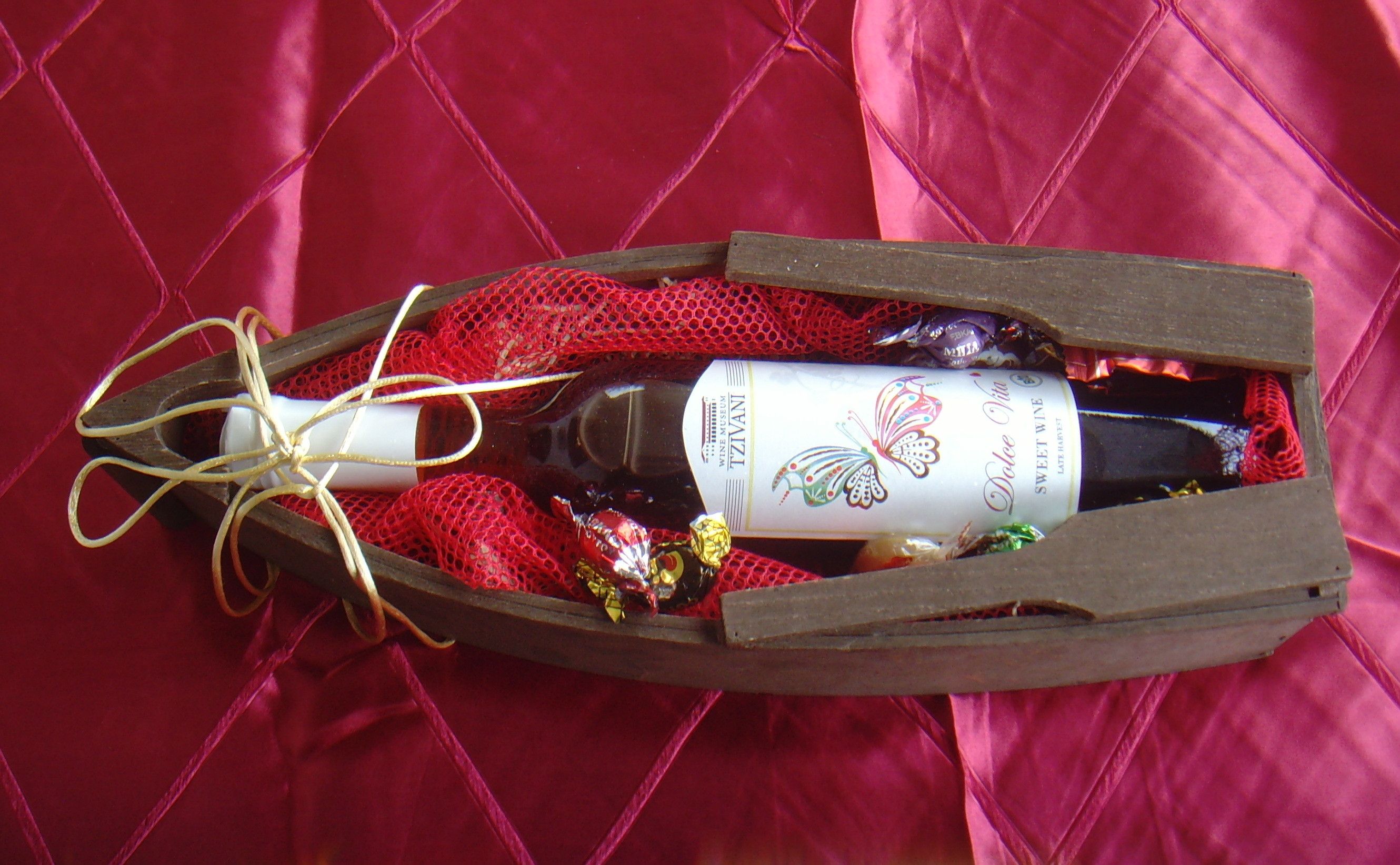 Εορταστική βαρκούλα δώρου με 1 βιολογικό κρασί + Δώρο