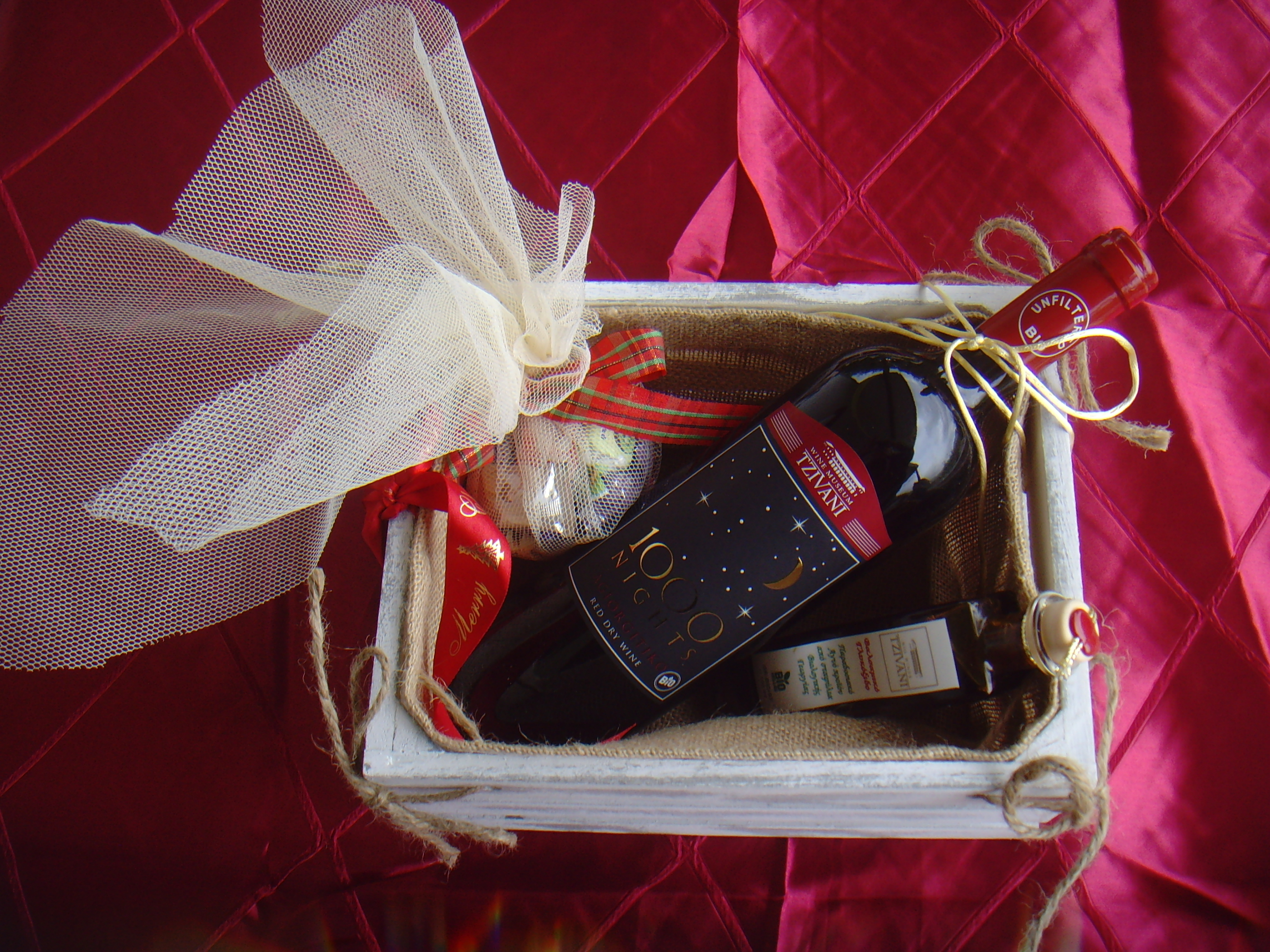 Εορταστικό λευκό τελάρο με 1 βιολογικό κρασί + Δώρο